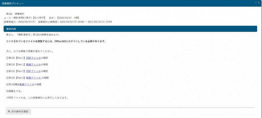 「横断演習Ⅱ」の初日は、動画制作をする上での著作権の問題などを中心に扱った動画配信による授業に加え、Zoomを使ったリアルタイムでのオンライン授業も行いました。