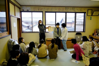 成安造形大学では、有志のプロジェクトゼミとして「堅田・はまさんぽ」というアートイベントを毎年実施しています。堅田地域の旧市街地の住民の方々と協力しながら、空き施設やショーウィンドウに作品を展示し、地域の子どもたちや障害のある方々とワークショップを行うなど、地域密着型のイベントです。