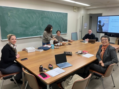 アーント先生の講演は、2022年に出版された著書『ことばによる分断』(Divided by the Word)に基づいており、南アフリカに住むアフリカ人の民族的な分断が、言語によって成り立っていることを説明するものでした。同一言語としてまとめられても良さそうなコーサ語とズールー語が、植民地化の過程で異なる二つの言語として捉えられたことが、コーサ人とズールー人という民族意識、そして民族間の対立につながっていったのです。その内容は大変興味深く、私(上林)を含め当日参加者たちは熱心に聞き入っていたことと思います。講演後は、甲南大学の教員だけでなく、大学院生や他大学の研究者も交えて、活発な議論が交わされました。歴史学や文学、言語学とさまざまな専門分野の専門家が参加していたため、多様な視点からの議論が展開されましたが、アーント先生はすべての質問に丁寧に答えてくれました。