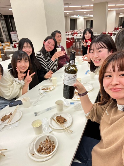 予定より時間の伸びた発表会の後は、愛知学院大学・星ゼミの皆さんが親睦会を催してくださいました。名古屋名物の手羽先や、星先生差し入れのポルトワインに皆で舌鼓を打ちました。その後は合宿所に移り、遅くまで語り合いました。