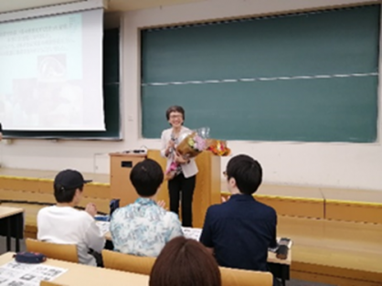 井野瀬先生の最終講義は、井野瀬先生が本学で33年間の長きにわたり、つねに新しい世界の状況に目を向けて研究活動を行い、そして最新の研究成果を学生たちに提供してきたという、自負と誇りが伝わってくる内容でした。そして、大学の研究者としてあるべき理想像を常に追い求めてこられた、井野瀬先生の誠実なお人柄が伝わってくる最終講義でもありました。歴史学の深みと、研究者としての高みを感じさせてくれる、甲南大学の歴史に残る素晴らしい最終講義となりました。