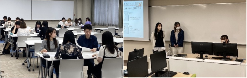 調査結果に基づき、学生がグループに分かれ、今後のコミュニケーションAIアプリの開発に活かせる内容をまとめました。そして、SELF株式会社のスタッフに議論した内容のプレゼンテーションを行いました。実際の研究結果に基づく議論を行ったことで、双方に新たな気づきが得られ、心理学研究と製品開発との繋がりを体感することができました。