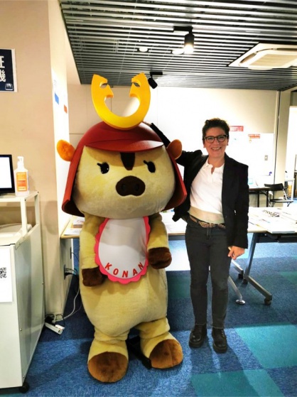 ドルラン先生は構内を散策され、本学公式キャラクターのなんぼーくんと記念撮影をされるなど、大変喜ばれていました。また学内のPRONTOで開催された懇親会では、教員や学生たちと歓談され、神戸でのひとときを楽しんでいただけたようでした。