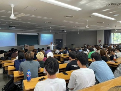 2025年10月23日(木) 文学部新着情報 お知らせの一覧6月19日にペンシルヴァニア州ウィルクス大学准教授の志水昭先生をお招きしてオープンセミナーを開催いたしました。志水先生は甲南大学法学部を1993年に卒業後、トラック運転手を経験したのち、ミュージシャンを目指して渡米、その後一転してイリノイ大学大学院歴史学部に入学、2011年に近世日本の市場文化に関する博士論文で学位取得、という異色の経歴を持ち、甲南大学のOBという意味でも、学生たちにとって興味深い機会となりました。