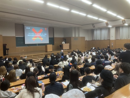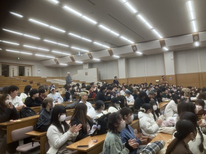 2026年1月13日(火) 文学部新着情報 お知らせの一覧甲南大学文学部英語英米文学科では、学生と教員が参加する英語英米文学会(KEALL)を組織し、新入生歓迎会や卒業生送迎会など様々な活動を行っています。KEALL最大の催しが、12月に行われる英語サミットです。今年度は、12月17日に英文科卒業生の講演会とクラス対抗クイズ大会を実施しました。