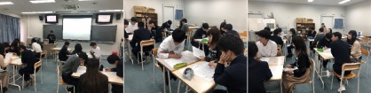 途中、生徒さん同士のグループワークを2度はさみ、各自に「東住吉事件における自白のどこがおかしいのか」「そのような自白は、どうして生まれてしまったのか」ということについて、考えて発表していただきました。