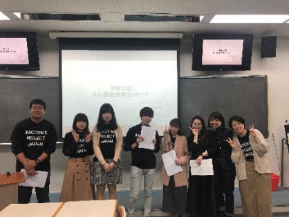 2019年12月10日(火) 法学部新着情報 甲南高校3年生の「法学入門」の授業で、えん罪救済ボランティアの学生が講義をしました。本番当日の様子です。