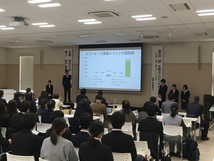 柘植ゼミの3年生は、加古川市政策企画課政策推進係の協力を得て、加古川市におけるオリンピックイベントを提案しました。アンケート調査によって把握した加古川市民の要望を踏まえ、オリンピック開催前、期間中、開催後のそれぞれの時期に開催する計3つのイベントを提案しました。オリンピックの感動と興奮を年間を通して味わえるよう、それぞれの時期に開催するイベントを提案した点がポイントです。
