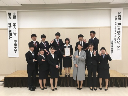 2020年2月21日(金) 経済学部新着情報2020年2月8日(土)に、ウェルネージかこがわにて、加古川「知」を結ぶプロジェクトの成果報告会が開催されました。このプロジェクトは、甲南大学と加古川市が連携し、神戸新聞社の協力を得て実施しているもので、加古川市の行政や企業などがかかえる課題について学生が研究し、解決策を提案するものです。