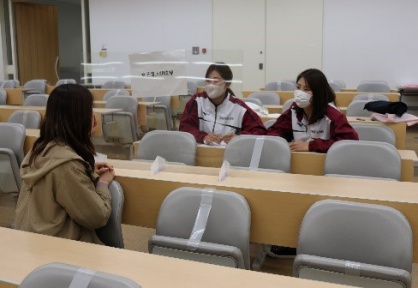 ※本学では、入構時の検温やIC端末による登学記録の登録、学内でのマスク着用や教室の入退室時の手指消毒の徹底、ソーシャルディスタンスの確保など、さまざまな新型コロナウイルス感染症対策を行っています。