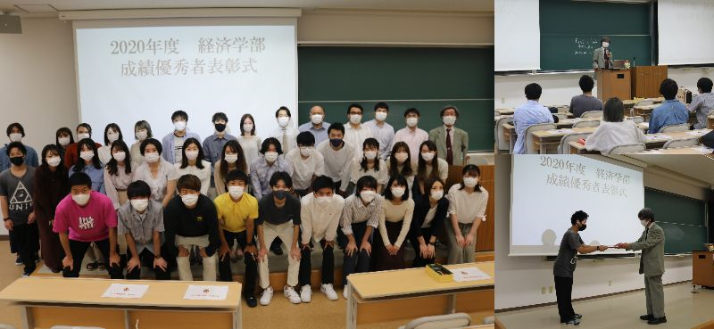 2021年10月11日(月) 経済学部新着情報10月6日(水)の昼休みに、2020年度経済学部成績優秀者表彰式を行いました。経済学部では毎年、前年度の成績が上位3%に入った2~4年生を成績優秀者として表彰しています。