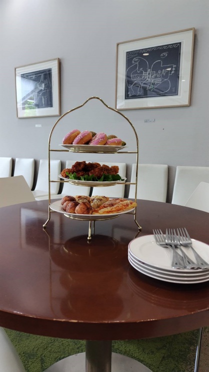 大学内に「パンセ」というカフェがあって、そこでご飯を食べることができます。1枚目の写真のように、アフタヌーンティーセットみたいなものを皆でいただきました。写真がちょっと見にくいのですが、ドーナツ・クロワッサン・唐揚げ・ポテト・ピザ・たこ焼きが乗っています。ちょっと変な組み合わせですが、それも大学内のカフェらしいところです。ちなみに、このセットでなんと1人500円でした!