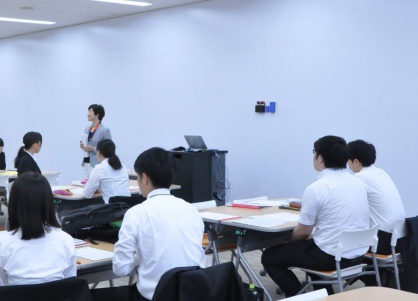結団式では、これらの企業担当者様が大学に来られ、9月からインターンシップ生として派遣される学生と初めて面談しました。BPコースへの所属は、1年次末に決まり、その後1年半かけてBPコースのための特別講義が行われます。これまでにBPコースに所属する14名は、それらの講義を受け、インターンシップ先の企業の情報を集め、レポートを作成してきました。