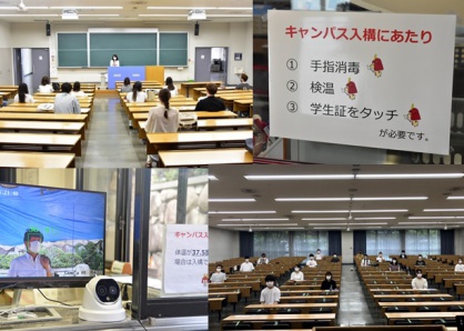 なお、キャンパスに立ち入る際には、マスク着用、学生証によるチェック、アルコールによる消毒、検温、また教室においても、距離を置いての着席、机の消毒など、感染拡大防止に努めています(経営学部 若林公美)。