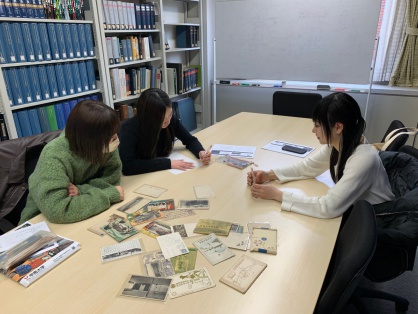 平野ゼミでは、各年度、学生と教員が一緒になって取り組むテーマを設定し、専門書や学術論文を読んだり、史料を収集・分析したりしています。小さな成果でもよいので,学術的なアウトプットを出すことを目指して取り組んでいます。1期生は、テーマを途中で変更しましたが、明治期の紡績工場で働く女性労働者たちの作業着を調べることになり、昨年末に学会発表を行うことができました。2期生は、明治・大正期の紡績業の絵葉書を取り上げることにして、現在、一生懸命勉強しているところです。昔のことを調べて、何の意味があるのか?今の経営にどのような意味があるのか?「作業着」や「絵葉書」が、経営とどのように関係するのか?もちろんそういったことも考えていきます。平野ゼミでは、歴史から経営学を考えます。
