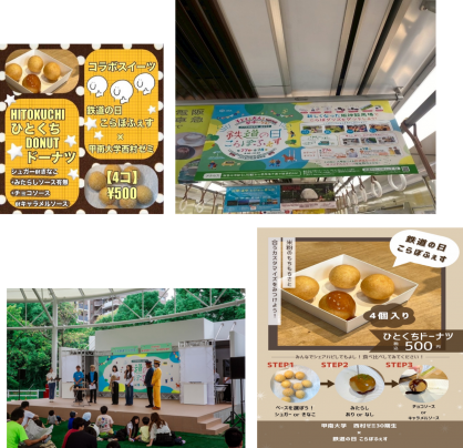 このプロジェクトは、阪急電鉄が沿線での活性化の為に企画したもので、阪神競馬場での家族で楽しむ一日のイベントで販売されたものです。西村ゼミの3年生は、当日・当該場所で、調理や加工を行わない等の条件を考慮し、4種類の一口ドーナツを開発し販売しました。