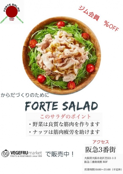 こちらは筋トレをしている人をターゲットに開発された「フォルテサラダ」です。素材ひとつひとつの栄養素を徹底的に分析し、筋トレに必要な栄養素がたっぷり入っています。筋トレをしていない人でも低カロリーなのでダイエットにもおすすめです。