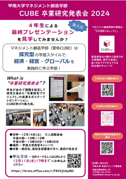CUBE卒業研究発表会2024を見学いただけます! <12月14日>