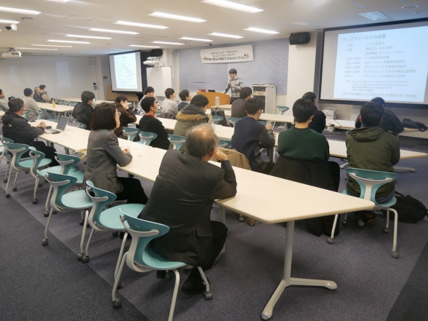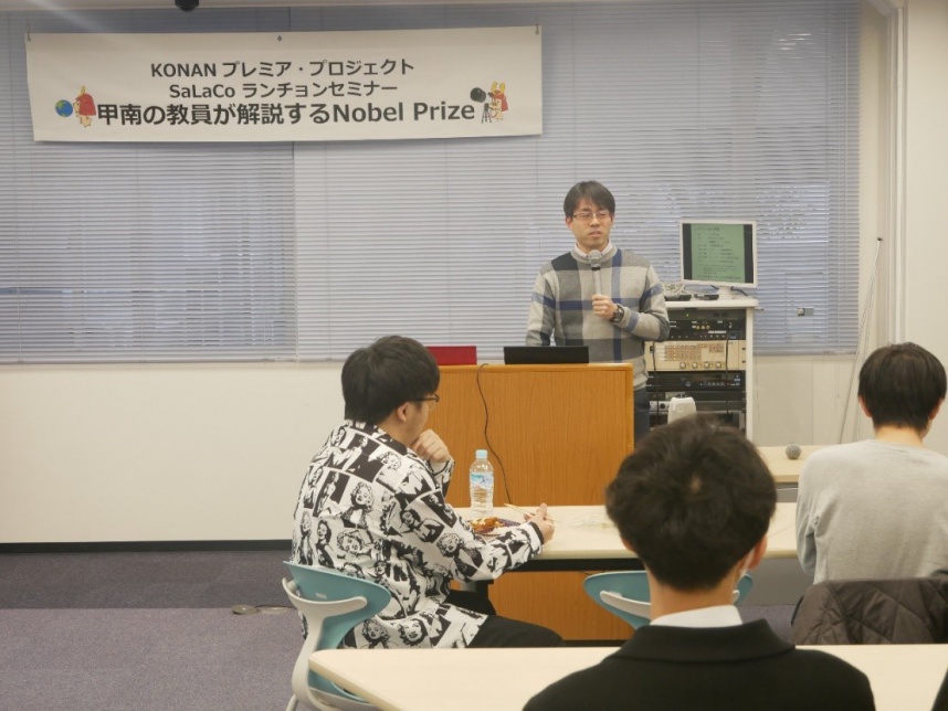 2024年度の第三弾として、1月8日(水曜)に『甲南の教員が解説するNobel Prize 2024 ノーベル物理学賞』を開催しました。当日は、「対面・オンライン」形式をとりながら、昼食時間を利用して、ご飯を食べながら講演を聞くスタイルで実施しました。