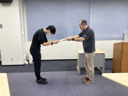 これらの賞を受賞した学生がひとりひとり北村学部長より賞状を授与され。株式会社paizaより副賞が授与されました。このたびの受賞、誠におめでとうございます。