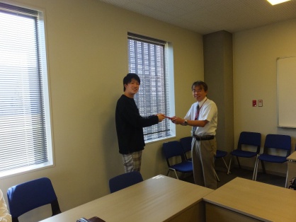 2019年11月06日(水) フロンティアサイエンス学部新着情報2019年10月31日(木)、ポートアイランドキャンパスにて、7代目SLの離任式と8代目SLの任命式が執り行われました。プロジェクトリーダーと学生活動支援委員会主任教員から、半年間にわたってFIRSTの環境整備に尽力してくれた7代目SLに労いの言葉とともに記念品の目録が贈呈され、8代目SLには今後の活動への期待と激励の言葉が述べられました。