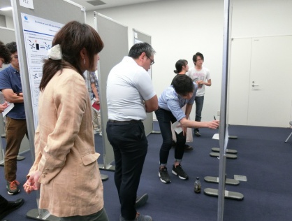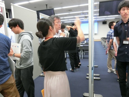 講演の合間には、7階のレクチャールームにおいてFIRST学部4年生・大学院生の他、知能情報学部、東京農工大学の学生達が自分たちの研究成果を発表しあうポスター発表会を行い、異分野交流や活発な意見交換ができました。