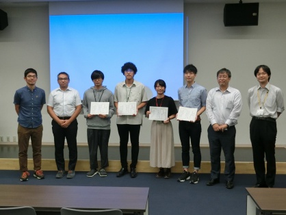 最優秀講演賞には本学部西方研究室の川勝薫平さんが受賞しました。また、優秀講演賞には本学部川内研究室の伊藤功彦さんと杉本渉さん、東京農工大学川野研究室の齋藤千尋さんが受賞いたしました。おめでとうございます!