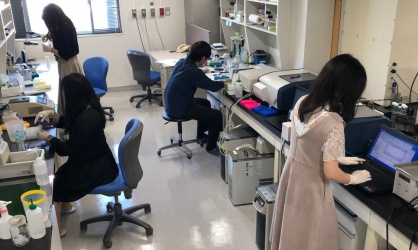 写真に写っている学生のうちの1人は、今春に1年間のアメリカ留学から戻ってきた学生です。実験にブランクがあって不安だと言っていましたが、いまでは問題なく実験に取り組めています。また別の学生は、来年に国立大学の大学院へ進学することが決まっており、現在の研究テーマで成果を出すために毎日実験をしています。FIRSTでは、企業に就職する学生だけでなく、大学院に進学する学生も少なくありません。FIRST学生の就職・進路データは、学部のホームページとキャリアセンターのホームページで公開しています。こちらも是非ご覧下さい。