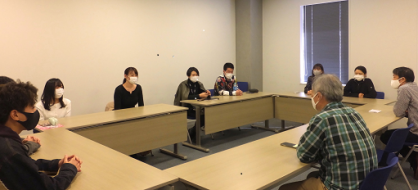 まずはじめに、FIRST学部長からKONANプレミア・プロジェクトの趣旨についての説明があり、SLが中心となってみんなが利用しやすいマイラボの環境づくりを目指してほしいとの言葉をいただきました。続いてプロジェクトリーダーの教員より、半年間にわたってFIRSTの環境整備に尽力してくれた8代目SLには労いの言葉を、また9代目SLにはマイラボのウィルス感染予防対策やBIBLE(1年生用の授業時間外学修資料「Basic-knowledge Index Before Learning(通称BIBLE)」の取り組みなど、リーダーシップを発揮するとともに教職員が一丸となってSL活動を推進してほしいなど、期待と激励の言葉が寄せられました。