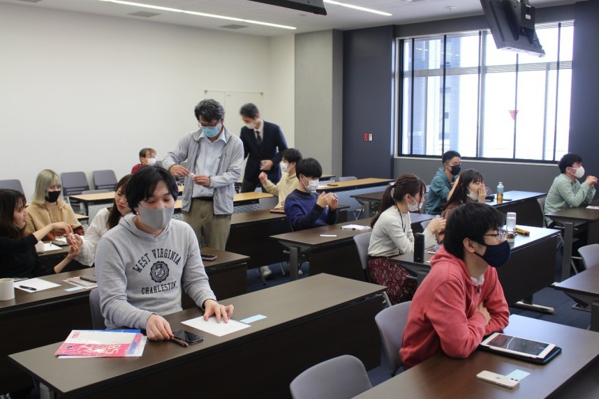 嗅覚に作用する化学物質である香料は、生命と化学を学ぶフロンティアサイエンス学部の学生にとっては関心の的ともいえる分野。今回のセミナーは学生たちにとって、卒業後のキャリア形成や就職活動について考えを深める良い機会となりました。