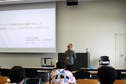9月21日のセミナーでは、自然科学研究機構 生命創成探究センターで最先端のバイオイメージング研究に取り組まれている、石井宏和先生から、研究職のキャリアデザインなどについてお話を伺いました。