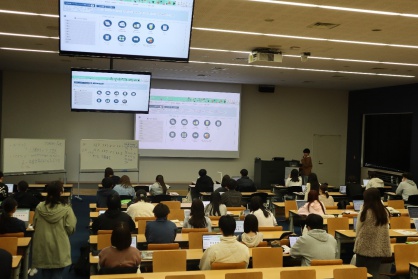 ガイダンスの後半では、スチューデント・リーダー(SL)が、授業の履修や課題提出に欠かせない学生ポータルサイト「My Konan」の使い方を中心に、学生目線でのパソコンの使い方講座を開催してくれました。