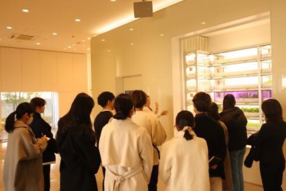 社屋をご案内いただきながら、どのように研究を行い製品に仕上げていくのか、またどのように安全対策を行っているか、などについて丁寧にご説明いただきました。今回は1年生や2年生の参加者も多く、こうした開発現場の裏側を間近で見る経験の少ない学生も多かったため、貴重な体験になったのではないかと思います。
