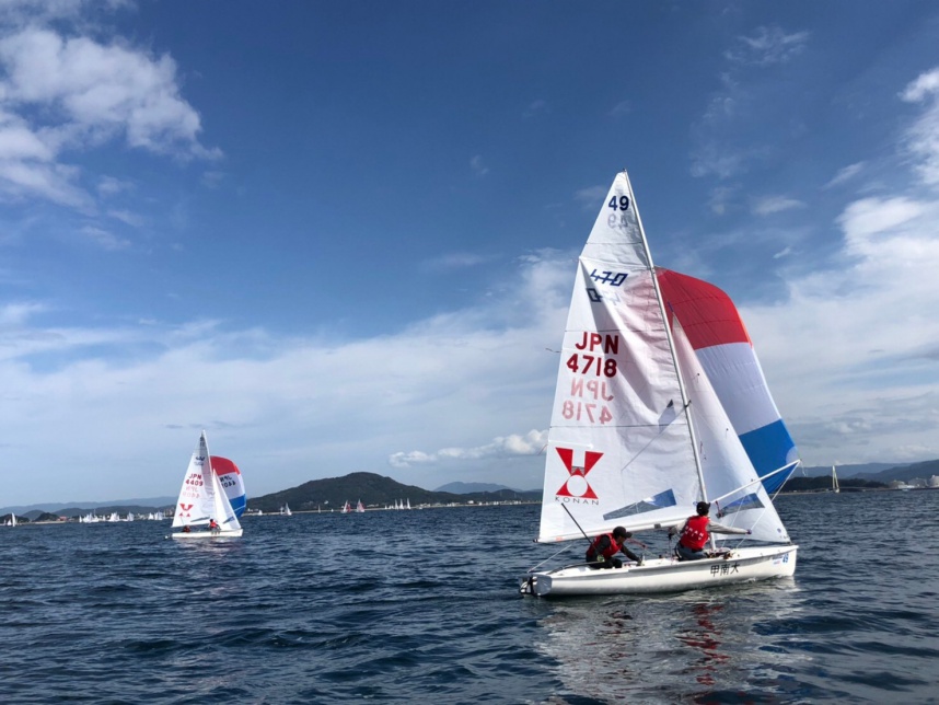 甲南大学は、4回生の選手が2人しかおらず、3回生以下の選手が多い中、大会に臨み、選手全員がレースを通して成長していました。来週11月11日には神奈川県相模湾で「全日本470選手権大会」が開催されます。今大会の経験を生かし、より良い成績を取るために、部員全員が精進してまいります。これからもご支援、ご声援の程よろしくお願いいたします。