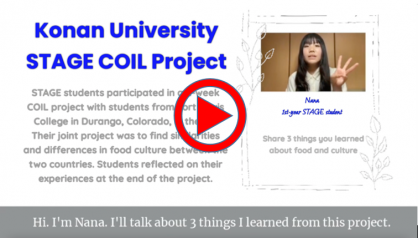 STAGE students reflected on their COIL experiences with students in the US. Please watch a 2-minute reflection video of Nana, a first-year STAGE student.