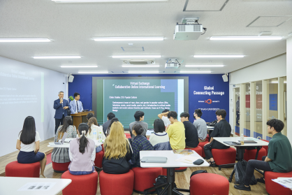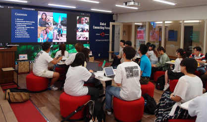 2024年10月15日(火) STAGE新着情報 お知らせの一覧 Global Connecting Passage(以下、GCP)は、世界とつながることを目的に誕生した、STAGEの最新施設です。最大の特長である壁一面の大型LEDモニターを活用し、海外の協定校とオンラインでつなぎ協働で行う「COIL型授業」(Collaborative Online International Learning)、海外からのゲストによるオンライン講義、留学生との交流会など、臨場感ある授業やイベントを随時行っています。STAGEでは「複数言語圏へのダブル留学」を卒業要件にしているため、留学に向けて、学生たちは世界とつながる学びに挑戦しています。