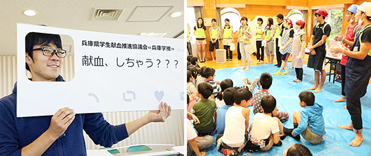 「1~2年生は、他大学の学生とも連携して、東日本大震災の復興支援をおこないました。現地を2回ほど訪れて、仮設住宅でのお茶会や児童館での縁日などを開催しましたね。いまは、神戸を中心に献血への呼びかけや、献血を推進するイベントの企画・広報をおこなっています」