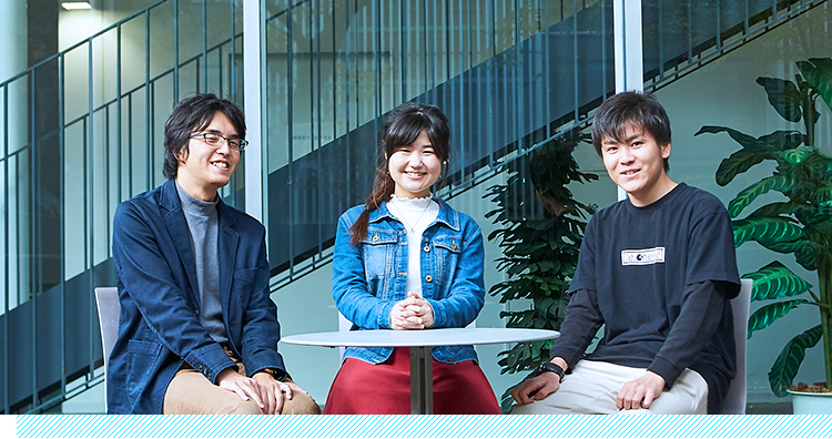 基礎から応用まで幅広い領域にわたって個性的な教育・研究活動を展開しているのが甲南大学の理系学部の特長。今回は、甲南大学の理系3学部を代表し、3名の学生さんに自身が取り組む研究や甲南大学の理系の魅力について語っていただきました。