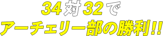 「今日は思い切り楽しむぞ!」と競技スタート。第1投、弓道部西田さん9点、アーチェリー部田丸さん7点。第2投、弓道部西村さん7点、アーチェリー部小島さん9点。ここでイーブンに!続いて第3投、弓道部金田さん7点、アーチェリー部長谷川さん10点。アーチェリー部優勢で第4投、弓道部下山さん9点、アーチェリー部城山さん8点。接戦の末、弓道部32点、アーチェリー部34点で、軍配はアーチェリー部に!対決後は「楽しかった!またぜひ勝負したい!」と両チームともに、爽やかな笑顔があふれていました。