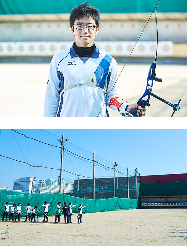 「世界に通用する紳士・淑女たれ」とは、甲南学園の創立者平生釟三郎先生のお言葉です。甲南のスポーツは大学入学からはじめる学生が多く、弓道やアーチェリーは部員の半数以上が初心者で、ゼロから手ほどきをし、学生を育てています。最初は地味な基礎練習ですが、その期間に同期と友達になり、先輩とも仲良くなり、1年に2度ある合宿では、部員同士の絆はさらに深まります。そして競技をしていく過程において、自主自立の精神を養い、なによりもフェアプレイの精神を養う。この「フェア」精神こそが世界に通用する人物たりうる要件となります。甲南のスポーツ教育力は、まさに「人格の修養と健康の増進」という建学の精神と合致しています。クラブ活動を通じて一生の友を得て、楽しく充実した学生生活を送って欲しいと願っています。
